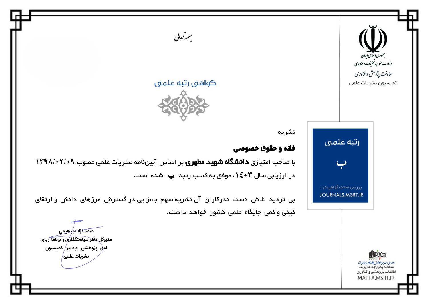 کلیدواژه‌ها: نشریه فقه و حقوق خصوصی معاونت پژوهشی و فناوری